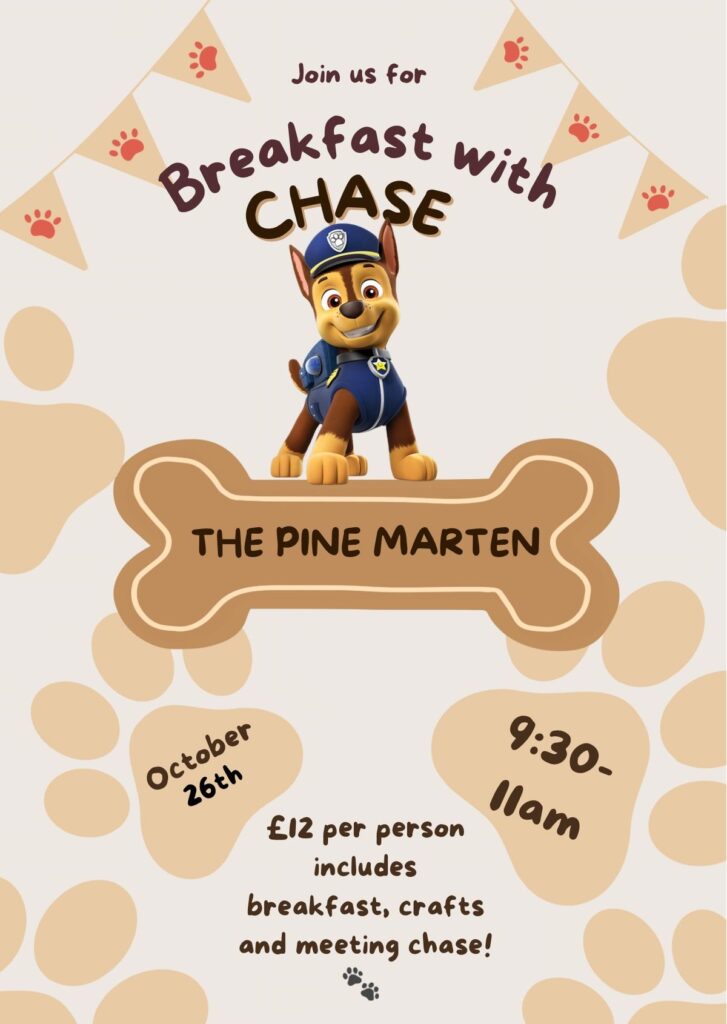 No job is too big no puppies too small!! Join the Pine Marten for their next character breakfast with the leader of the paw patrol team!!