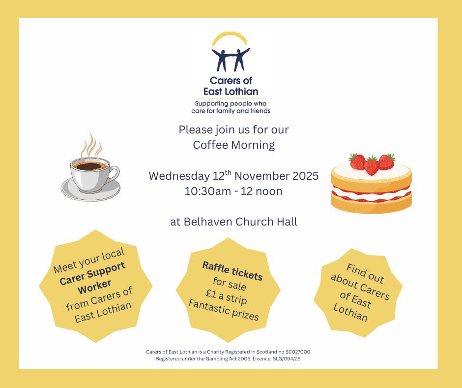 Carers of East Lothian's Dunbar carer support group will be holding a coffee morning on Wednesday 12th November at Belhaven Church Hall.