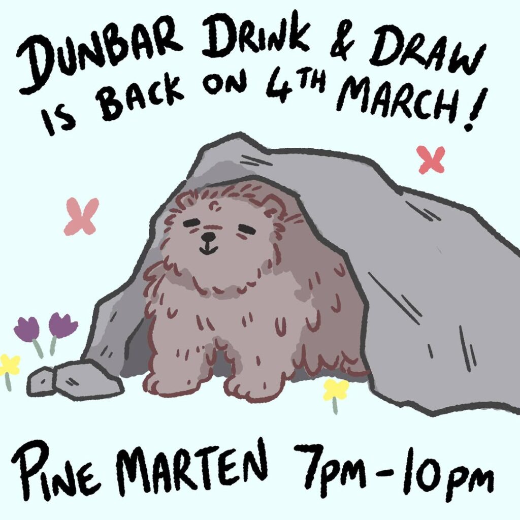 SPRING IS HERE AND HIBERNATION HAS ENDED! Drink & Draw will be back on the 4th of March at the Pine Marten.