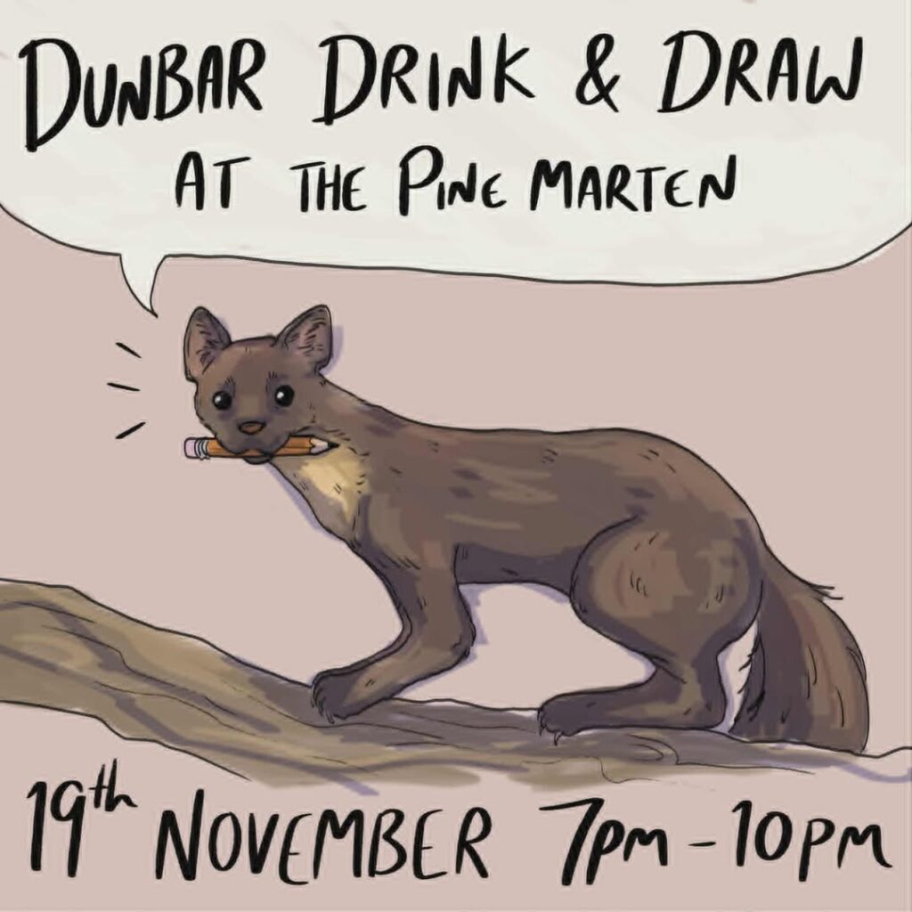 Bring your sketchbook, buy a drink from the bar and come chill with us at the Pine Marten! I'll have paper and pencils on the table too!