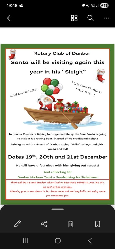 Organised by the Rotary Club of Dunbar, timings will be confirmed on Dunbar online etc.