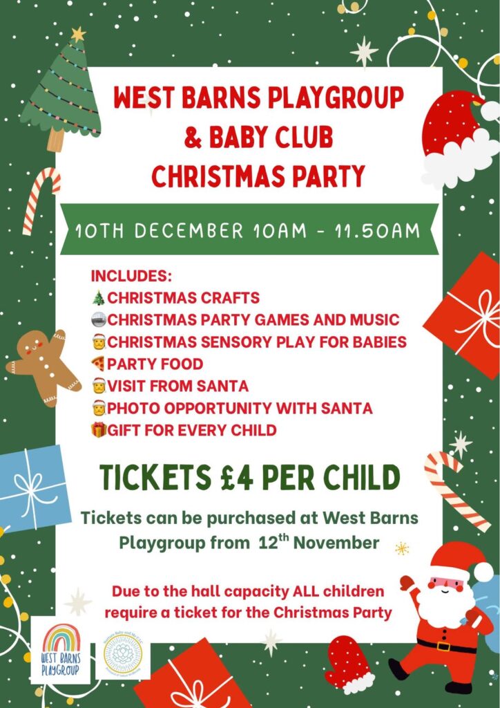 Includes a visit from Santa (and photo), a gift and lots of Christmas fun.